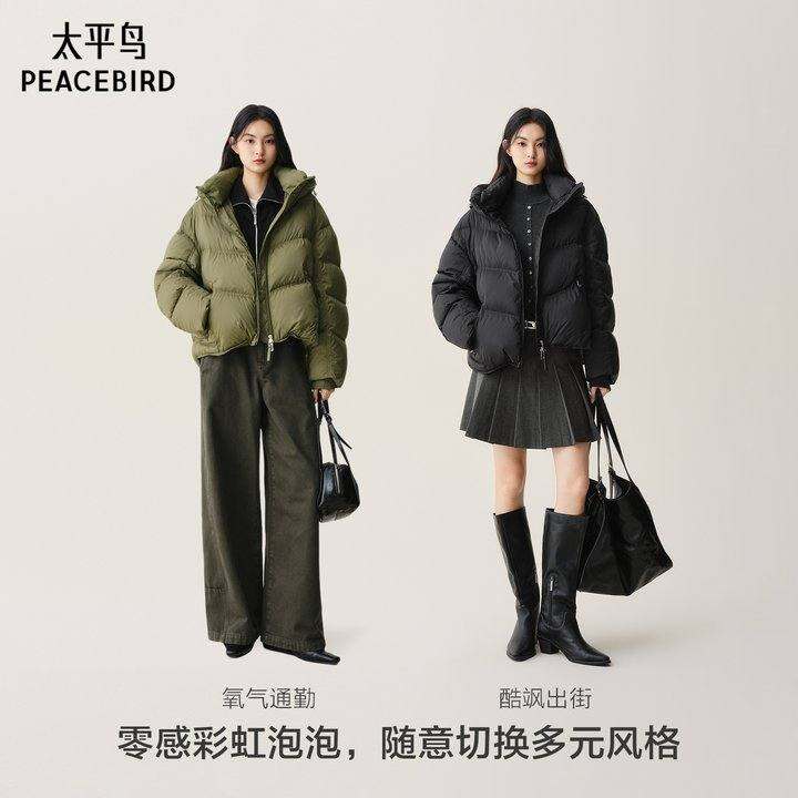 【绿泡泡】太平鸟商场同款龟背版型保暖羽绒服女白鸭绒A1ACF4208