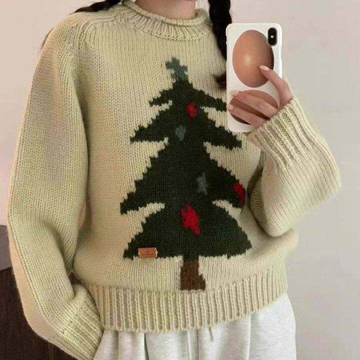 【现货】韩国egg鸡蛋家圆领圣诞树毛衣羊毛针织上衣东大门韩货