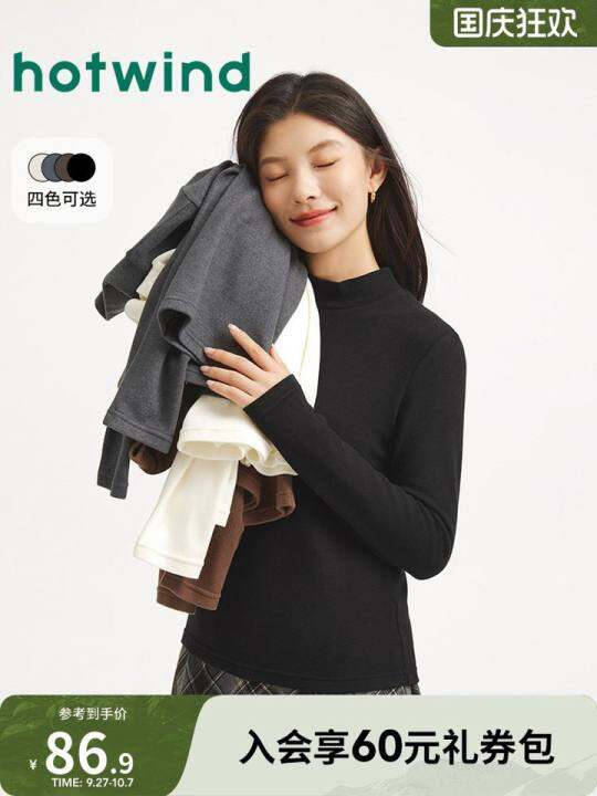 热风2025年冬季新款女士半高领舒适长T基础纯色柔软舒适软糯亲肤