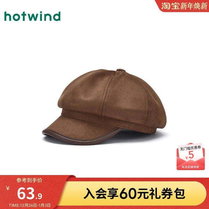 热风女士八角帽2025年冬季新款拼接八角帽韩系显脸小棕色八角帽
