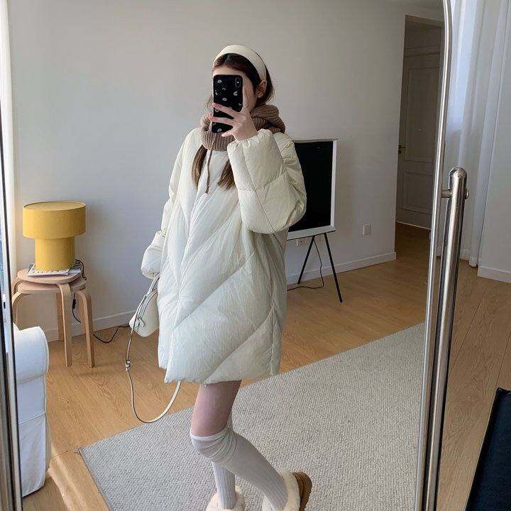 糖渍雪宝 三色菱形格绗线立领中长款羽绒服