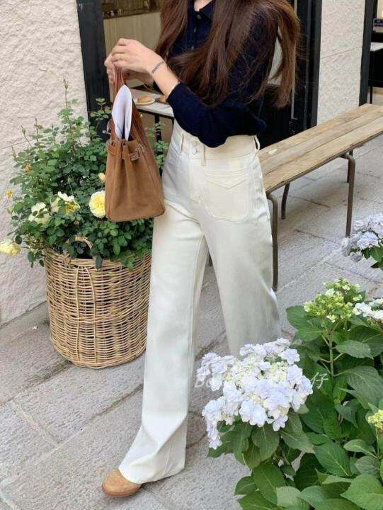 十三线马牛仔裤女式2025秋季新款高腰白色阔腿裤四向弹力拖地裤93189