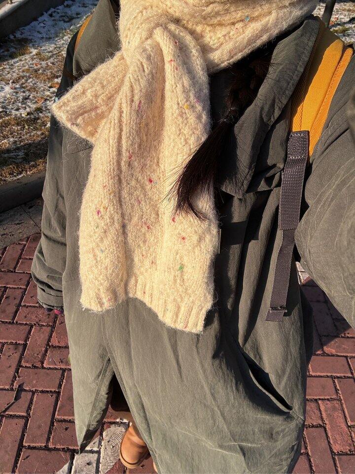 终于围上去年买的围巾了!羊绒背心过膝都穿上了证明已经到最冷的时候了。绿围巾还挺好看的的。