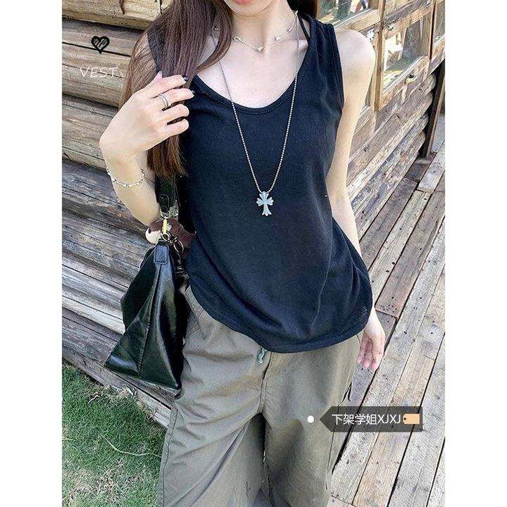 下架学姐黑色薄款休闲背心女夏季辣妹风显瘦百搭V领吊带简约上衣