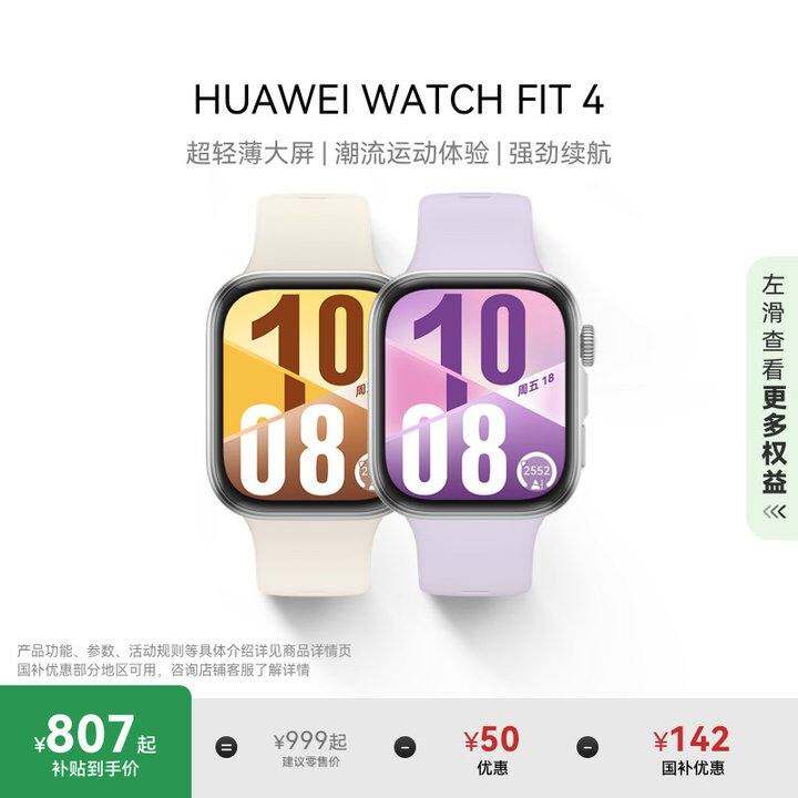 【国补15%】华为WATCH FIT 4华为手表智能手表超轻薄大屏潮流运动长续航睡眠监测运动手表华为fit3华为官方