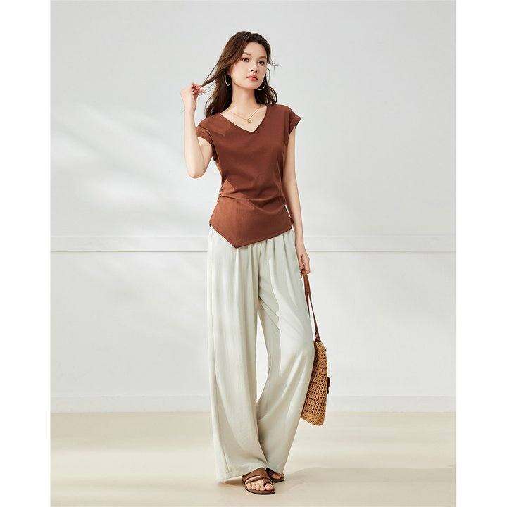 IEF/爱依服2025夏季新款法式成熟优雅通勤气质设计感V领百搭上衣