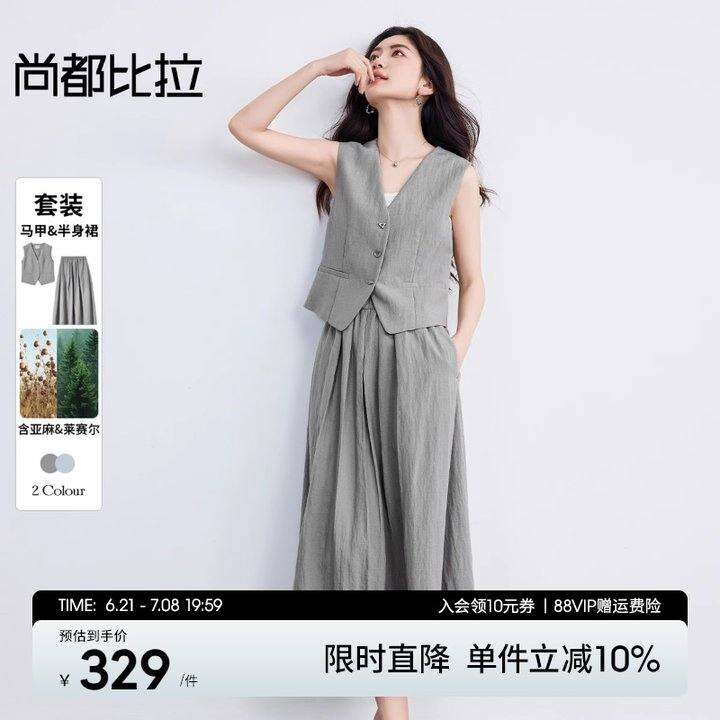 尚都比拉莱赛尔套装女两件套V领短款无袖西装马夹&显瘦A字半身裙