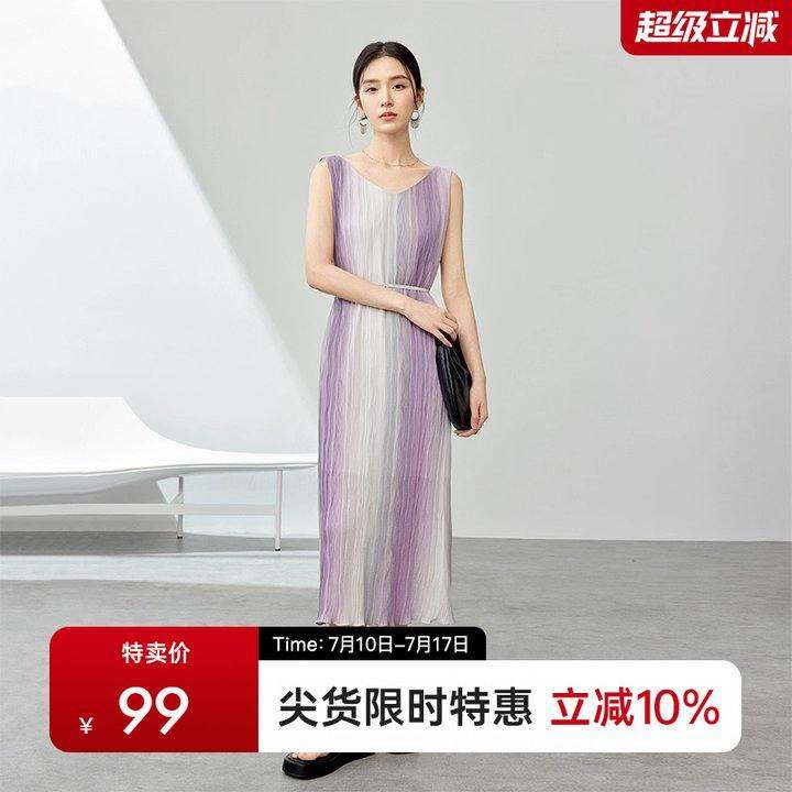 渐变色吊带背心式连衣裙女春季时尚优雅宽松显瘦V领中长款裙子