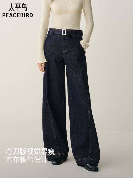 太平鸟本布腰带弯刀牛仔裤2025秋冬新款磨毛茧型香蕉阔腿牛仔裤女