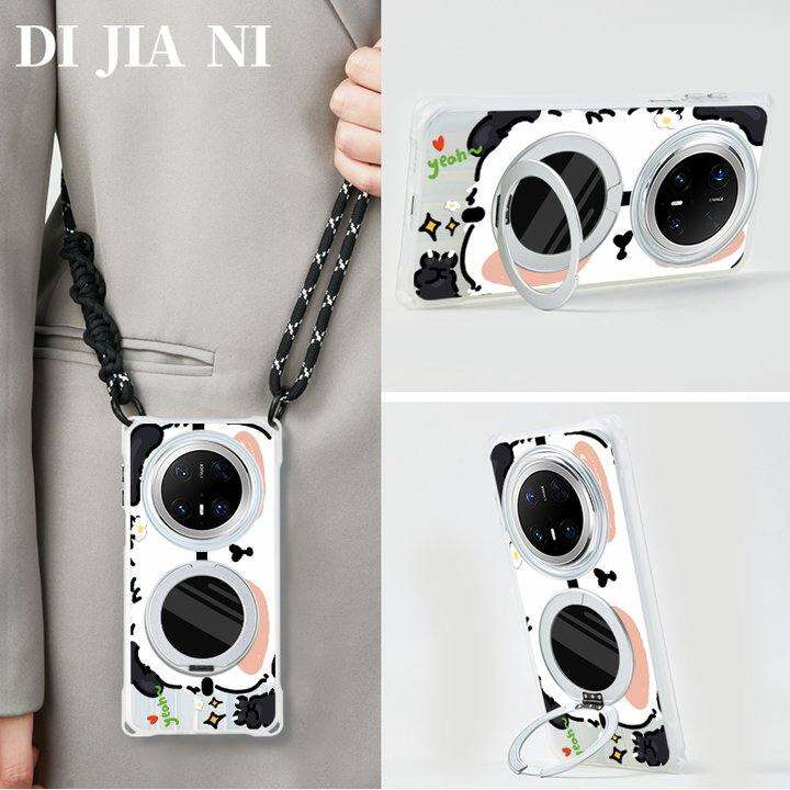 墨镜熊猫适用华为mate70Pro手机壳支架旋转华为mate60斜挎挂绳50女pro新款华为Pura70支点壳Ultra手腕p70壳