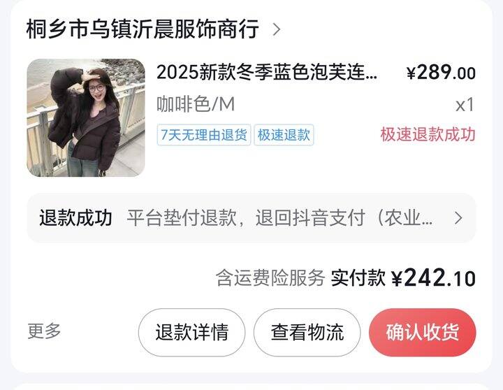 这件最后退了,出去逛街发现今年路上穿皮衣太多了,阿姨也穿小孩也穿,瞬间不想要了