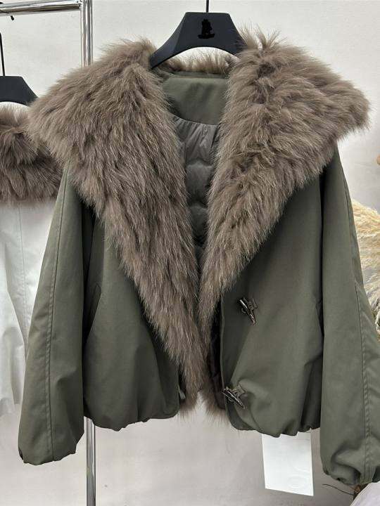 欧洲站欧货2025冬季新款大翻领狐狸毛领鹅绒羽绒服女宽松显瘦外套