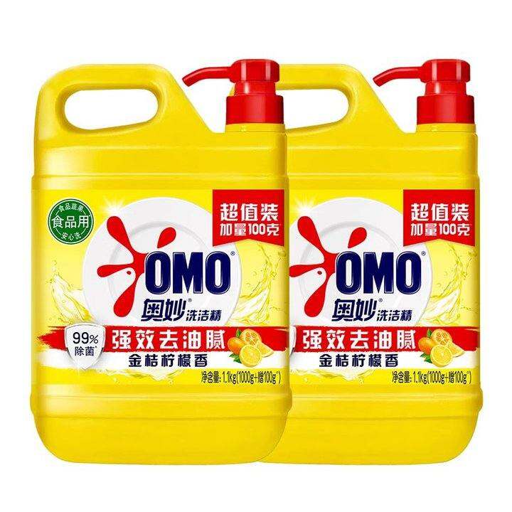 1.1kg奥妙洗洁精2桶 家庭装金桔柠檬 强去油洗洁精 大黄桶