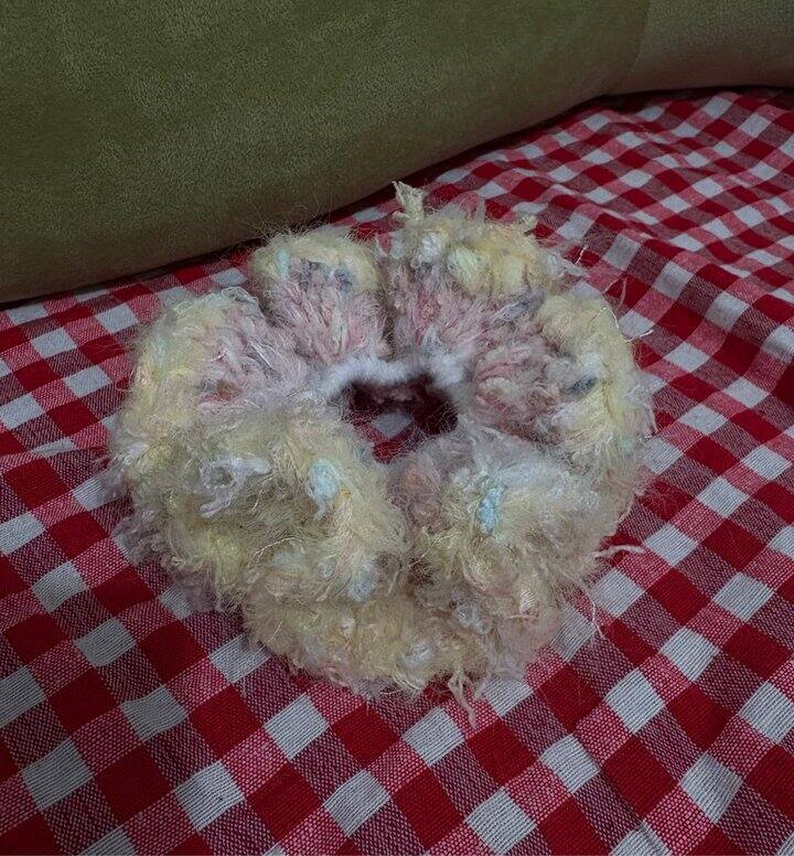 最近刷到针织发圈,又不想买价格很高的线来做这种三分钟热度的事情,刷到这个手混线盲盒,几块钱发了四团,颜色都是粉粉嫩嫩的,很适合做发圈这种小东西