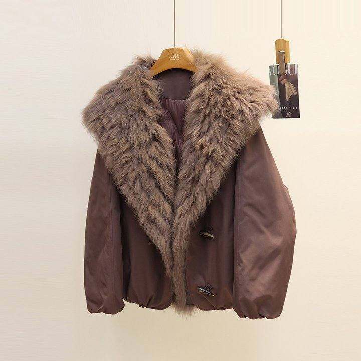 狐狸毛皮草羽绒服女2025冬季可拆卸大毛领短款鹅绒内胆保暖派克服