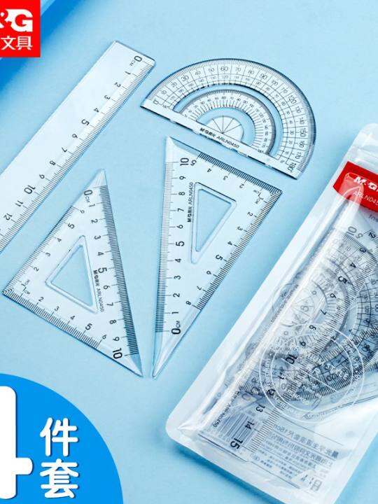 晨光套尺四件套透明尺子ins高颜值加厚简约学生套尺直尺三角尺量角器四件套考试可用套装