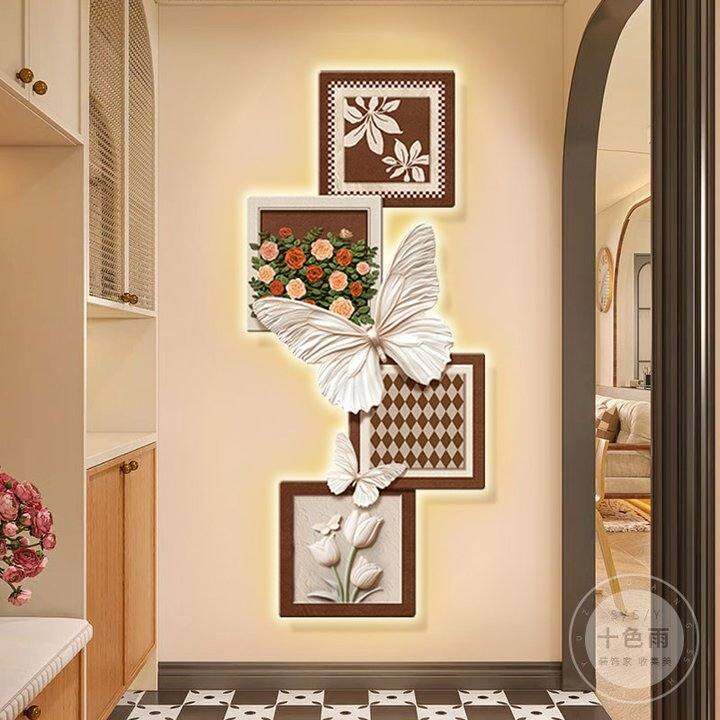 法式中古风入户玄关装饰画玫瑰蝴蝶壁灯客厅挂画复古走廊过道壁画