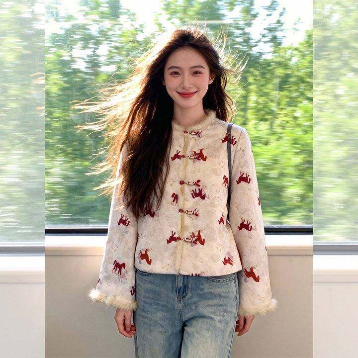 红色小马外套新中式通勤风冬日甜柔穿搭小个子精致绝美毛绒边上衣