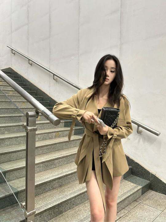 5werkwen 北川景子古早风衣 荷叶领短款大翻领风衣外套气质大衣