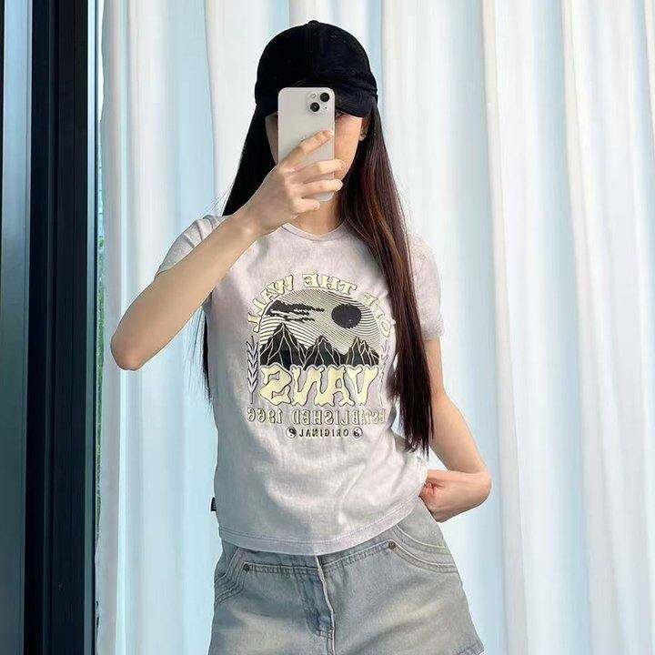 【重度水洗做旧】美国滑板原单 夏装新款 纯棉短款修身短袖T恤 女