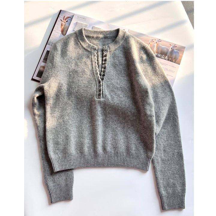 凯文家| 康赛妮AU早秋新格雷系山羊绒混纺半开圆领羊绒衫