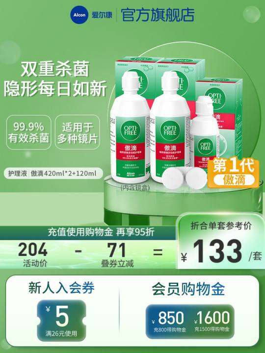 爱尔康第一代傲滴隐形眼镜护理液透明片美瞳清洁液除蛋白消毒杀菌