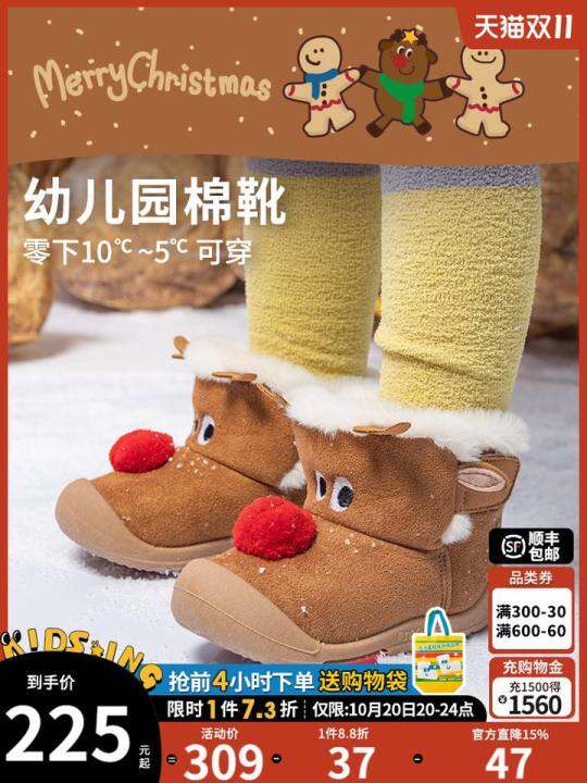 kidsing可迪星宝宝雪地靴冬季学步鞋男女童加绒加厚软底防滑棉鞋