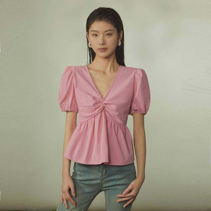 【孤品断码】THESEALIFE欧海一生V领泡泡袖衬衫套头上衣