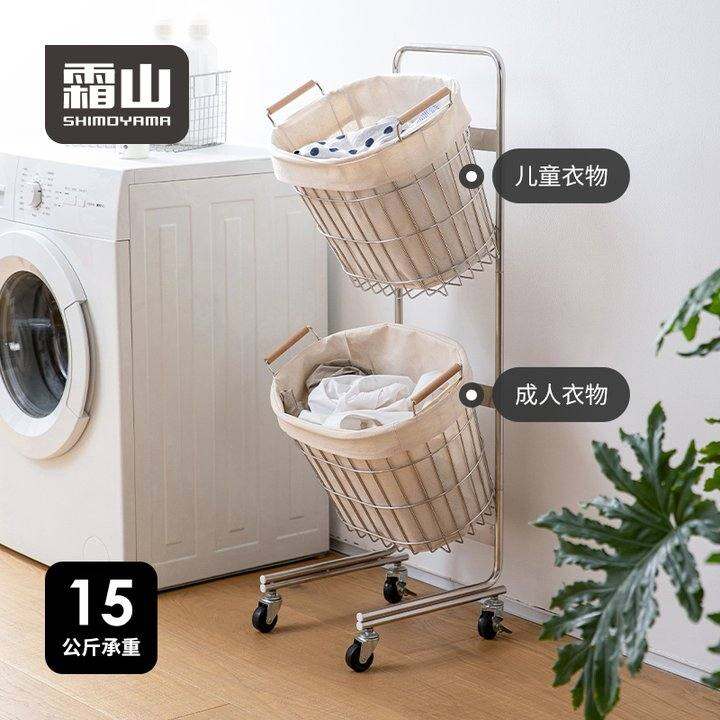 霜山脏衣篓家用不锈钢衣物分类收纳篮浴室脏衣服收纳筐可移动挂架