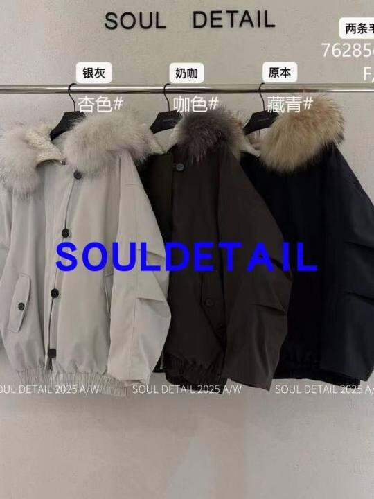 实体同款7628素予SOUL工装派克羽绒服女冬白鸭绒连帽毛领保暖外套