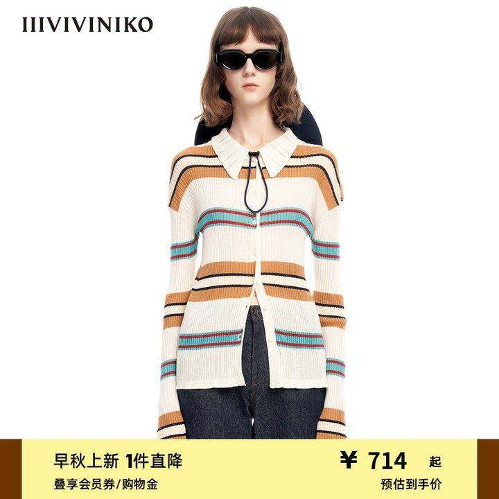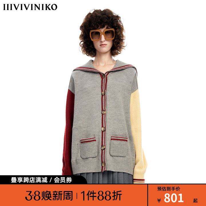 【早春新品】IIIVIVINIKO薇薏蔻学院风海军领绵羊毛拼色针织开衫