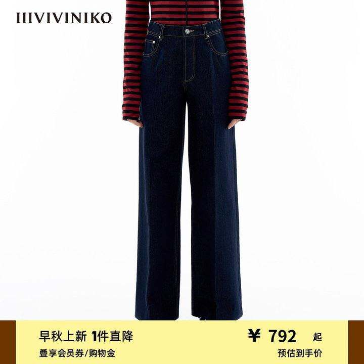 IIIVIVINIKO春季新款覆古牛仔阔腿直筒休闲 𫔮长裤子女C411810223B