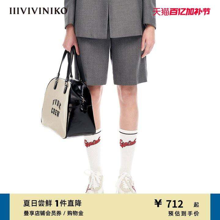 IIIVIVINIKO春夏新品宽松休闲复古羊毛直筒中裤子女M310801113A
