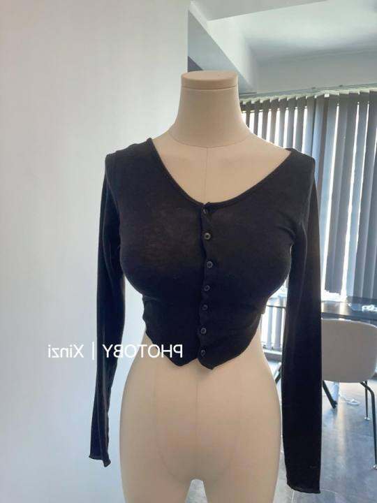 现货~51STUDIO自制新款简约长袖开衫性感紧身纯色小衫