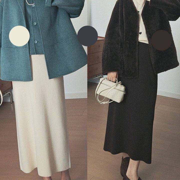 四平针加密羊毛蚕丝半裙秋冬百搭通勤高腰H型后开叉直筒半身裙