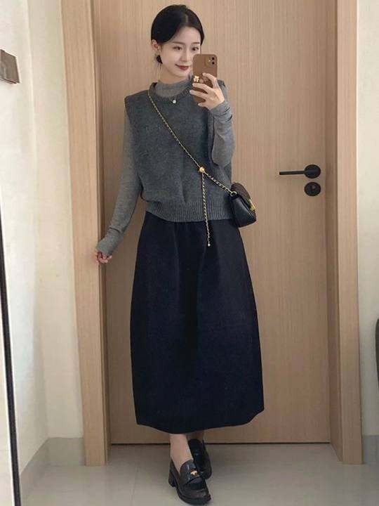高级感气质一整套女2025秋季新款搭配马甲打底半身裙时尚三件套装