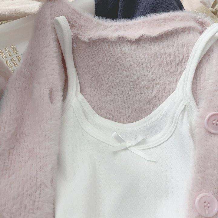 纯净感好乖的小吊带 少女蝴蝶结纯欲风 软糯纯棉针织