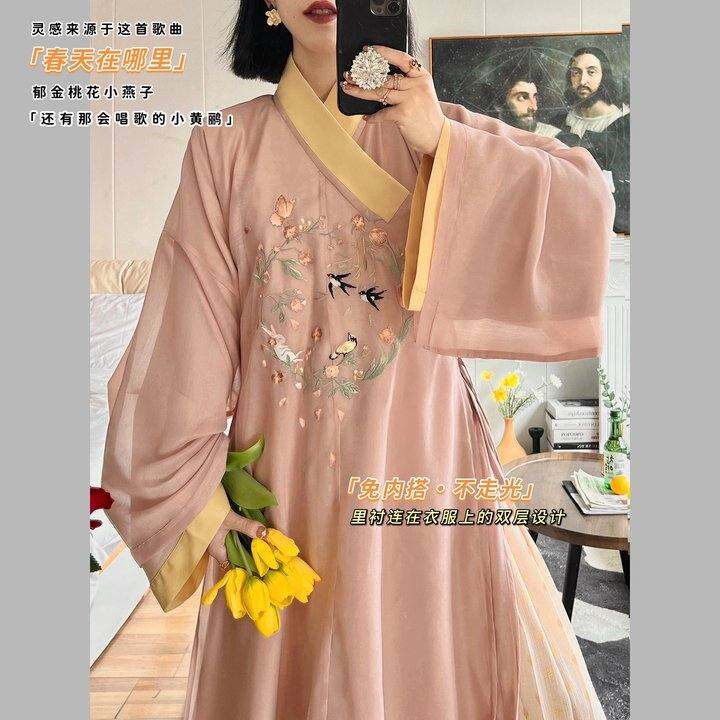 【春天在哪里】明制汉服刺绣交领直袖长衫女新中式改良国风百迭裙