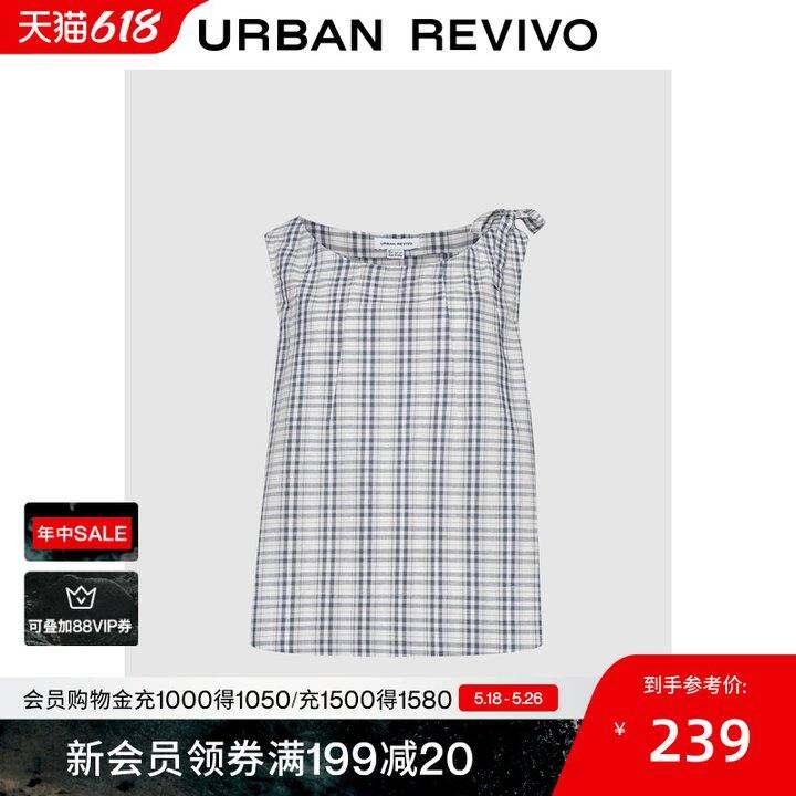 UR2025夏季新款女装简约格纹无袖系带宽松罩衫衬衫UYU250077