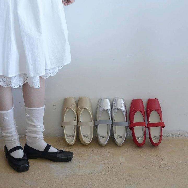 RURA芭蕾舞单鞋女外穿2025新款春季银色平底猪鼻子玛丽珍女鞋法式
