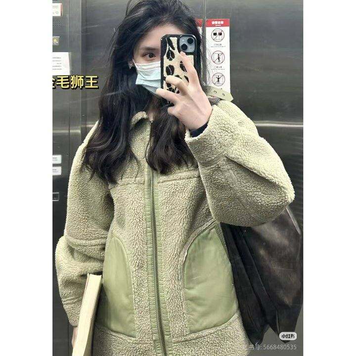 2WAY日单秋冬季美式复古立领夹克女宽松保暖羊羔绒外套显瘦棉服女