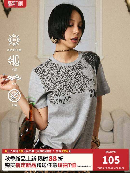 DONSMOKE正版授权NANA nana豹纹印花正肩T恤DSM贴肤舒适侧脸上衣