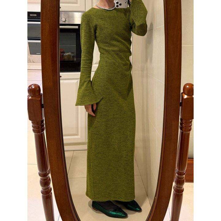 现货 LimpOnline|抹茶薄羊毛绿色长袖连衣裙