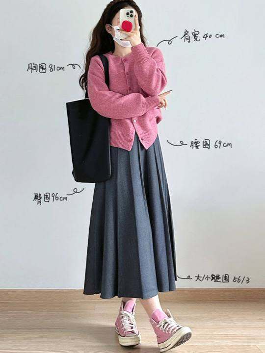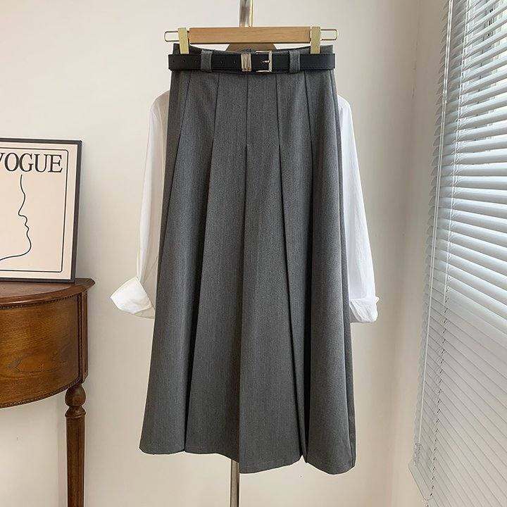 灰色西装半身裙女秋冬胖妹妹mm高腰遮胯显瘦a字裙梨形身材百褶裙
