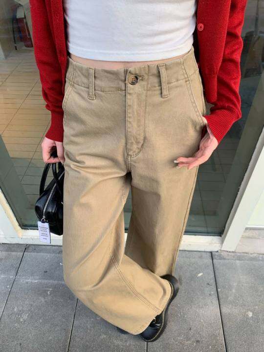 自制 ab款工装复古水洗纯棉中腰阔腿直筒拖地裤