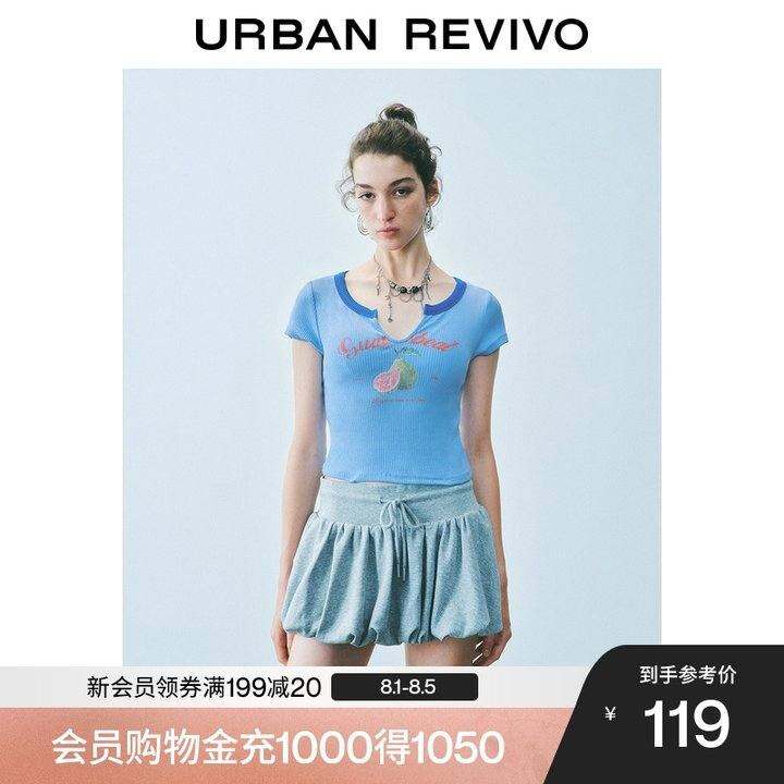 UR2025秋季新款女装时尚撞色印花拼接圆领短袖T恤UYY450240