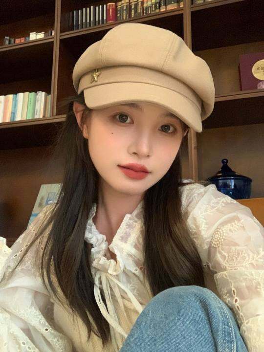 【我的头不圆】2023新款秋冬鸭舌帽子显脸小大头围八角帽贝雷帽女