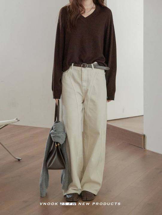 VNOOK 复古微弧牛仔裤女秋季新款纯色宽松直筒美式阔腿裤拖地长裤