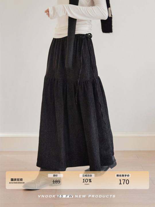 VNOOK 黑色绒面半身裙女秋2025新款高级感垂感松紧腰长款蛋糕裙子