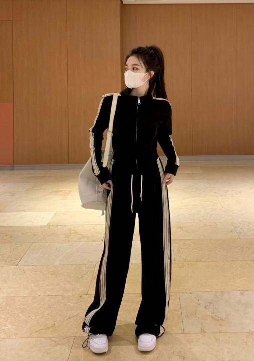 宅故事~秋显瘦休闲时尚运动高级感炸街辣妹高腰长裤套装